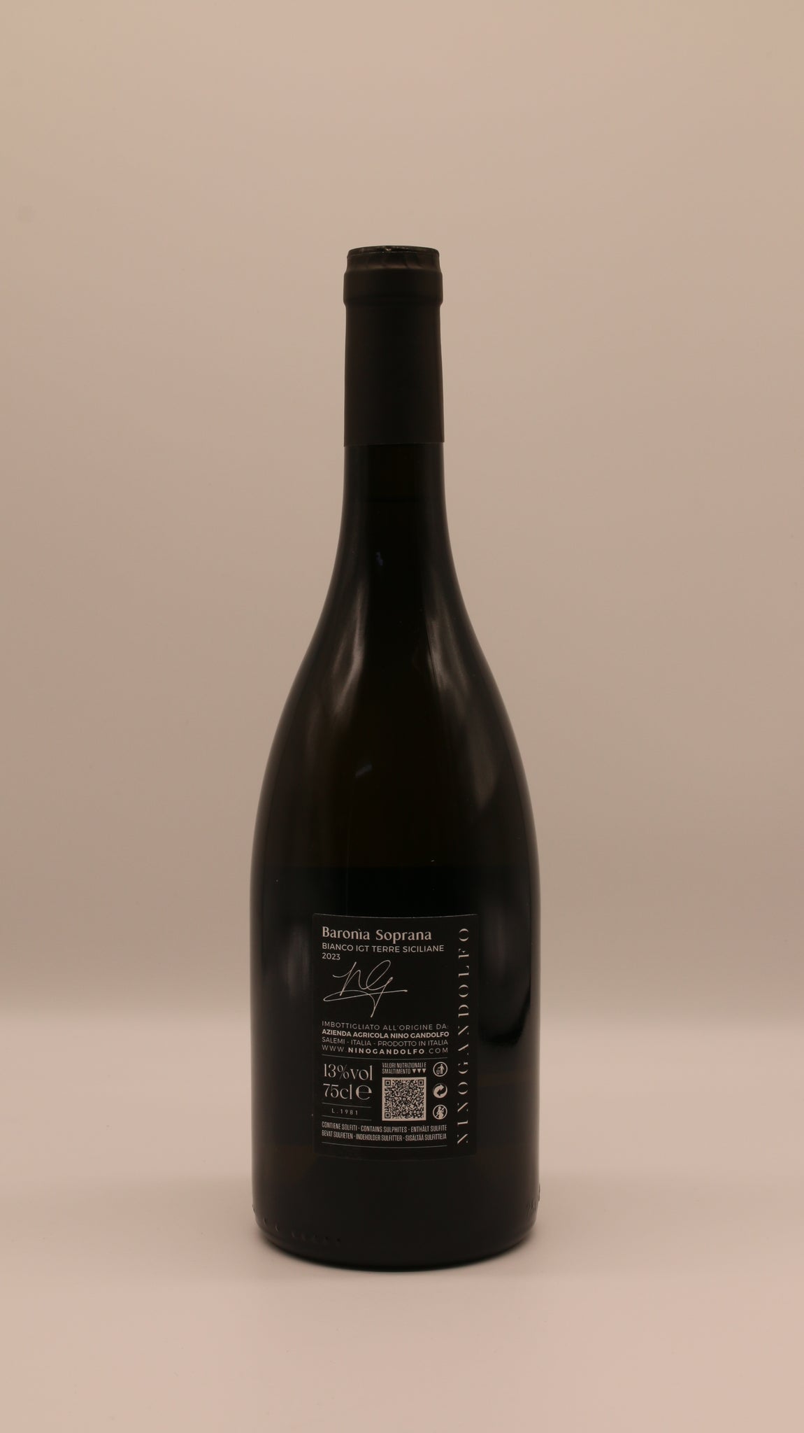 Baronia Soprana ist ein überraschend frischer, eleganter Weißwein aus Sizilien – Teil der hochwertigen Le Contrade-Linie von Nino Gandolfo. Die Trauben stammen aus Hügellagen rund um Salemi im Mazara-Tal, geprägt von kalkhaltigem, sandigem Boden. Das verleiht dem Wein eine animierende Mineralität und ausgeprägte Frische.