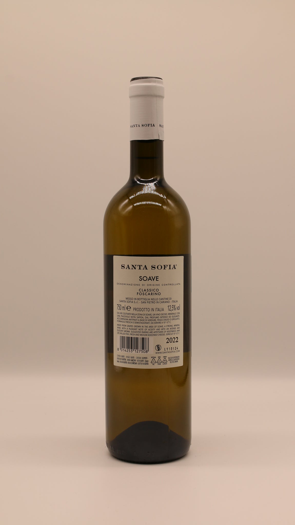 Schwach strohfarbenes Aussehen, mit reizvollen grünlich-silbernen Reflexen, der Geruch frisch, an weiße Pfirsiche und Orangenschalen erinnernd, vegetale Noten von Limoncella und Sternanis, blumige Aromen von Akazie und Maiglöckchen, mit typischem Geruch nach Mineralien und feuchtem Stein, was die besonderen Soave auszeichnet; ein feines, harmonisches, angenehmes Bouquet von ausgewogener Intensität. Der Antrunk ist leicht elegant, mit schöner frischer Säure, mäßigem Alkoholgehalt, eindeutiger mineralischer Geschmacklichkeit; süffig und saftig, hat einen langen und sauberen Abgang, der an die schon im Geruch erfassten Noten erinnert.